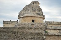 チチェンイツァーは800年頃にマヤ族に建造された旧遺跡群と、900-1100年頃にマヤ族と融合したトルテカ族に建造された新遺跡群から成り立ち、生け贄を捧げる儀式なんかが行われたのは戦闘民族でもあった後者の所。メキシコにはもともと蛇を神として祀る風習があったというが、トルテカのリーダーと蛇に羽の生えた神が融合して、ケツァルコアトルとして新遺跡のあちこちに石像が設置してあった。そのほかは旧遺跡に比べると全然装飾がない。あっさりしたものだ。そんなわけで、半分はトルテカ遺跡なのでこれをマヤ遺跡と呼ぶのには疑問が残る。