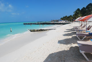 まずは島の北にあるビーチ、Playa Norteプラヤノルテへ向かう。ここが天国のようなビーチであった。砂は柔らかく白く、海は浜から沖にかけて透明、ミントグリーンを経て深い青へと美しく遷移する。これがカリブの海か。あんまり海に馴染みがない私、少し水遊びしては、チェアーに寝っ転がって日焼けしてみるもすぐに暑くて耐えられなくなり、また水遊びして…を繰り返した。海水浴なんて、覚えている限り生涯2度目だもん。海水が予想以上にしょっぱかったり、波を横切って平泳ぎするのは結構疲れたりといろいろ新鮮だった。