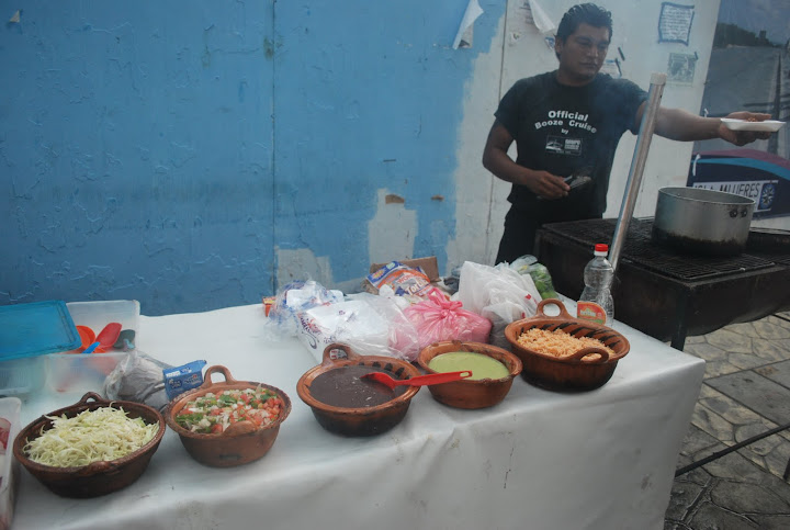市街地でもハイストリートは観光客向けのおみやげ屋が軒を連ねていた。店の数は多いが並んでいる商品はどこも同じ。中には初日のチチェンイツァーツアーの途中で立ち寄ったお土産屋で買った物もある。なんてこったい。私たち日本人を見るや「やすいやすい、たかい」と声を掛けてくる軒先のおじちゃん達に手を振りながらも、道ばたのワゴン売りアイスを購入。妹の好きなマンゴとココナツのアイスをコーンに載せてもらって$14。小さな数ならなんとか聞き取れるようになった。この旅行のためにスペイン語を4回習いに行ったのがやっと役に立ったと感慨深い。カンクンでは観光客相手には英語で話してくれるのであんまり困らないが、カタコトでもスペイン語を言ってみると反応が違う気がする。